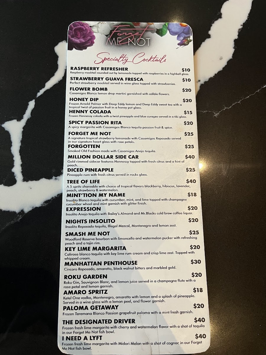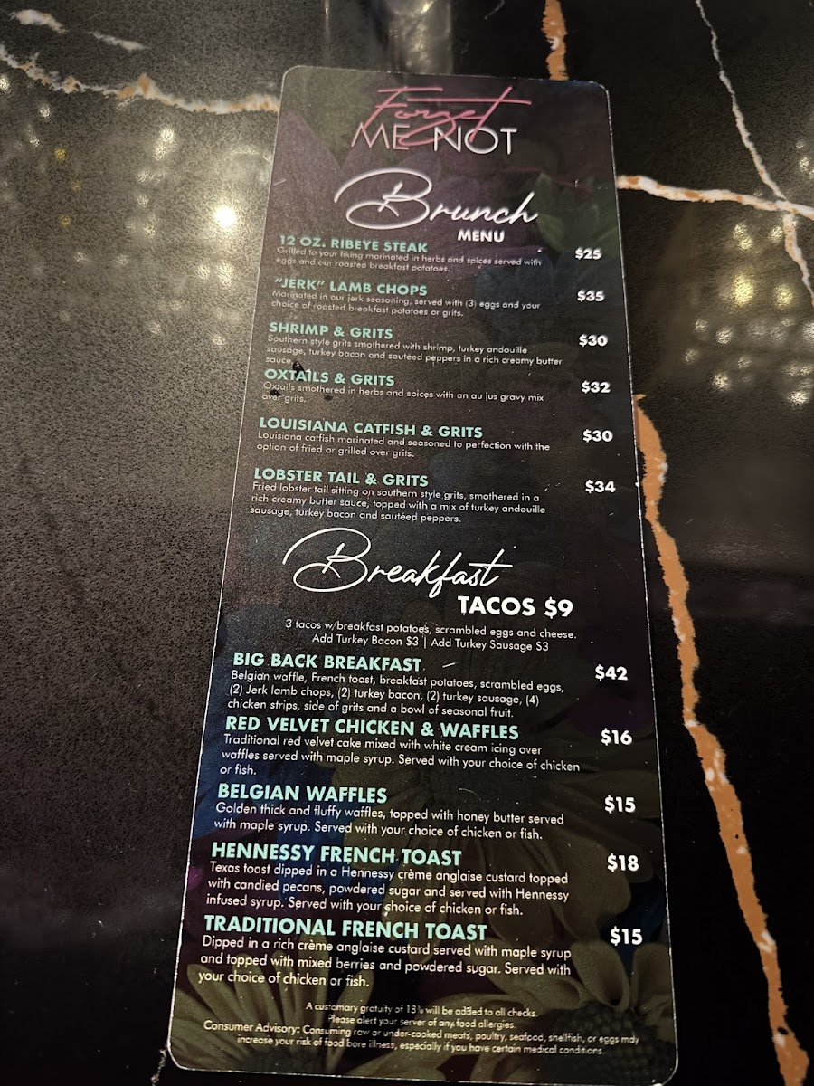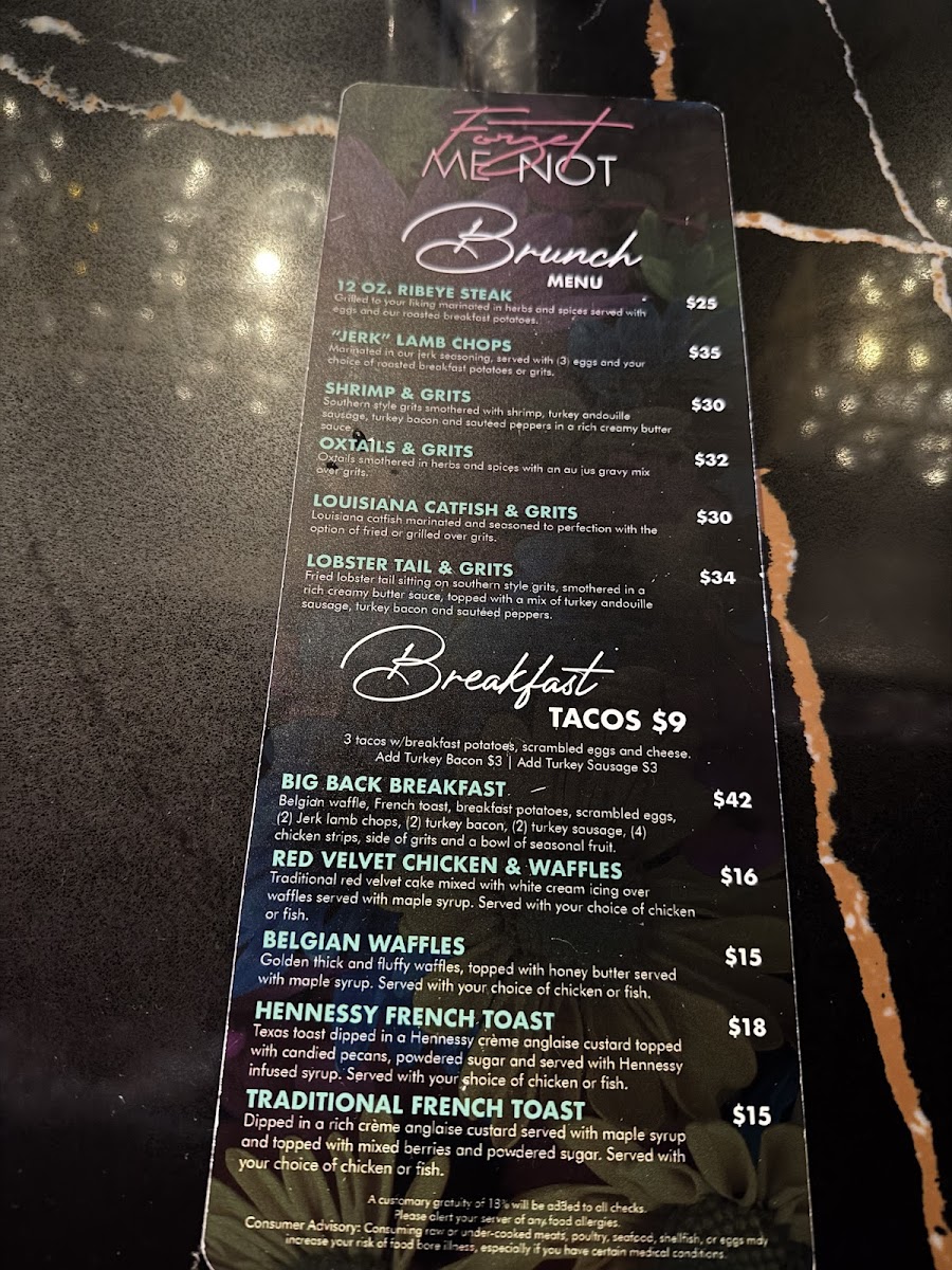 What truly sets Forget Me Not apart is its extensive drink selection. Sip on premium tequilas or a smooth cognac like the *Martin 1738*. The atmosphere buzzes with energy, making it an ideal spot for gatherings, celebrations, or a chic brunch. With rave reviews praising both the vibrant ambiance and attentive service, Forget Me Not ensures an unforgettable experience for all who visit.
